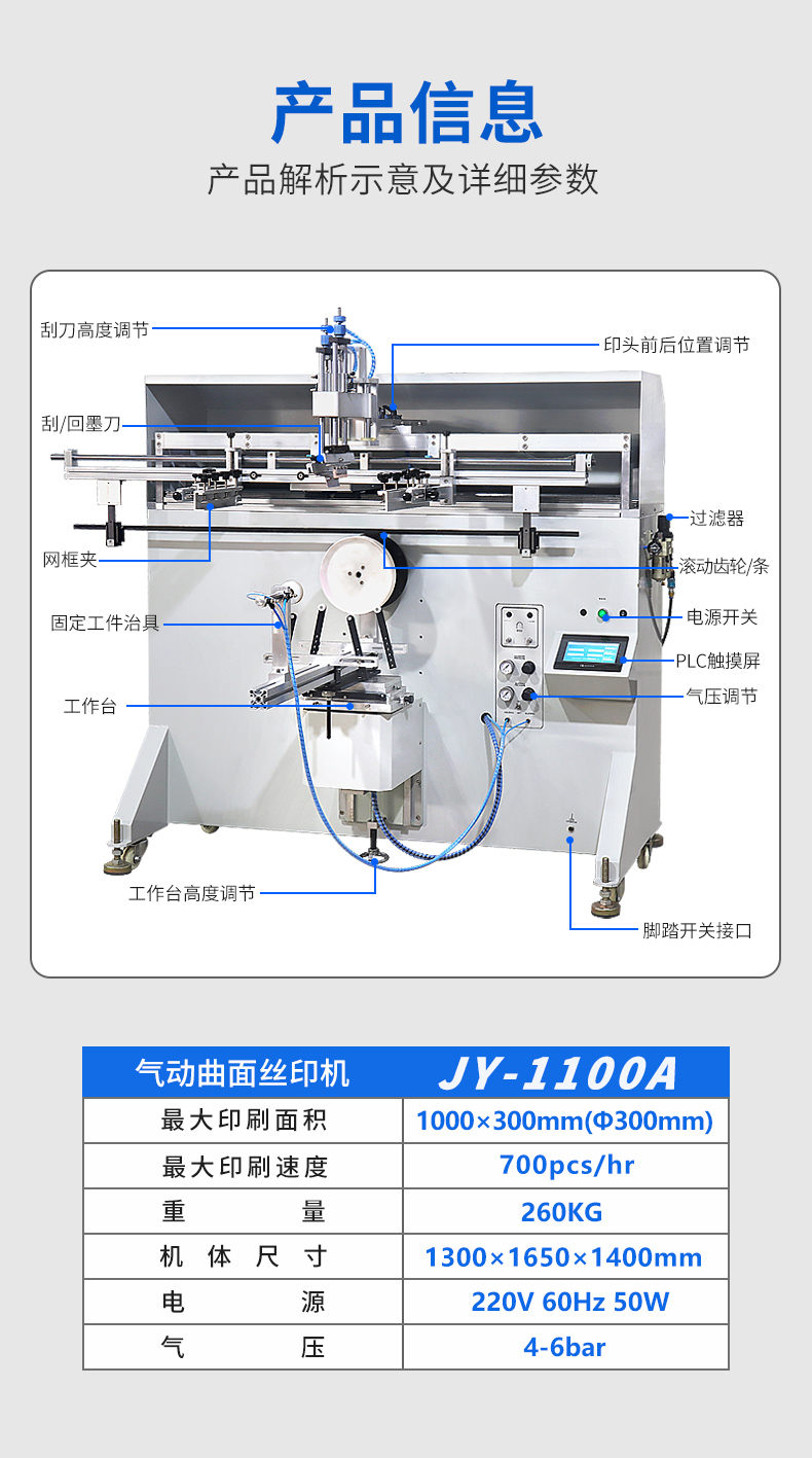 JY-1100A 圆面丝印机
